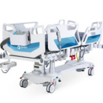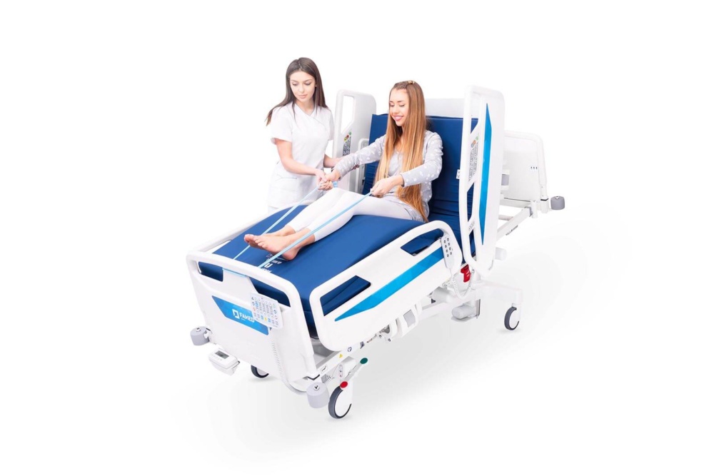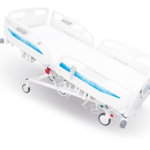 - Konstrukce lůžka na třech sloupech pro lepší stabilitu a větší pohodlí zdravotnického personálu.